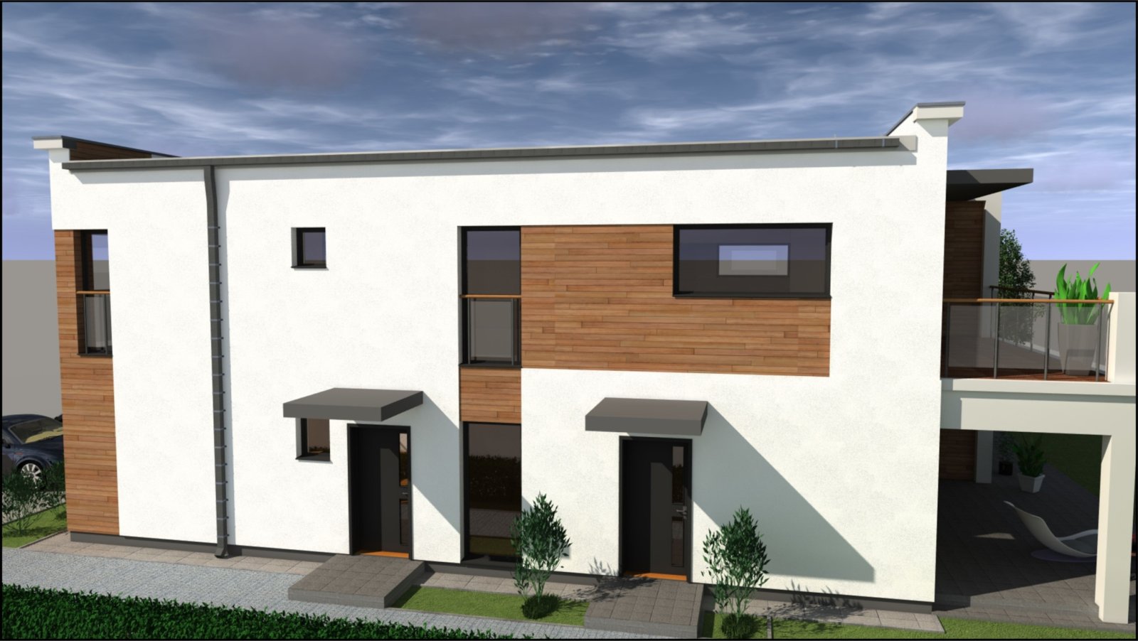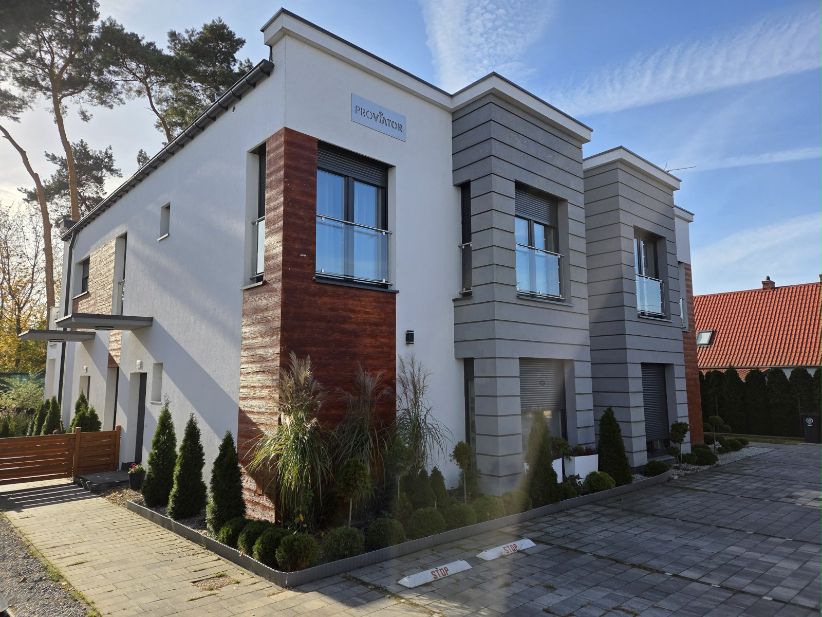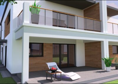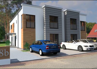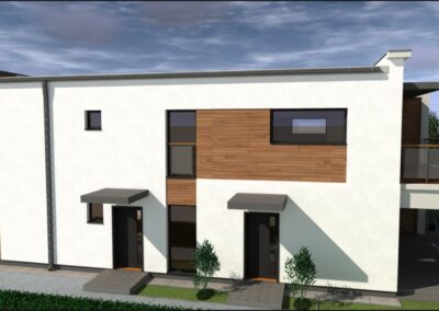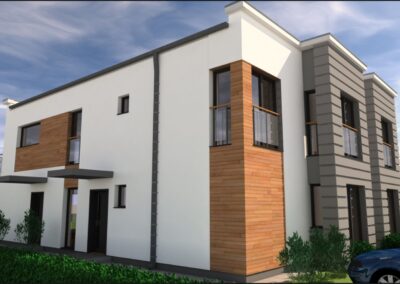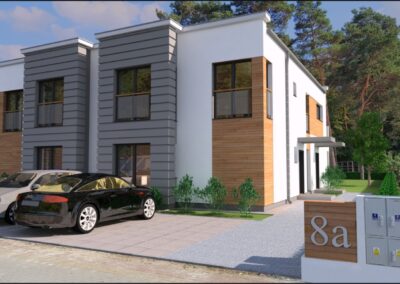 architektura: domy charakteryzują się nowoczesną i ponadczasową architekturą, z funkcjonalnie zaprojektowanymi wyróżniający się dużymi 80-90 m2 lokalami. Duże okna zapewniają doskonałe doświetlenie pomieszczeń.